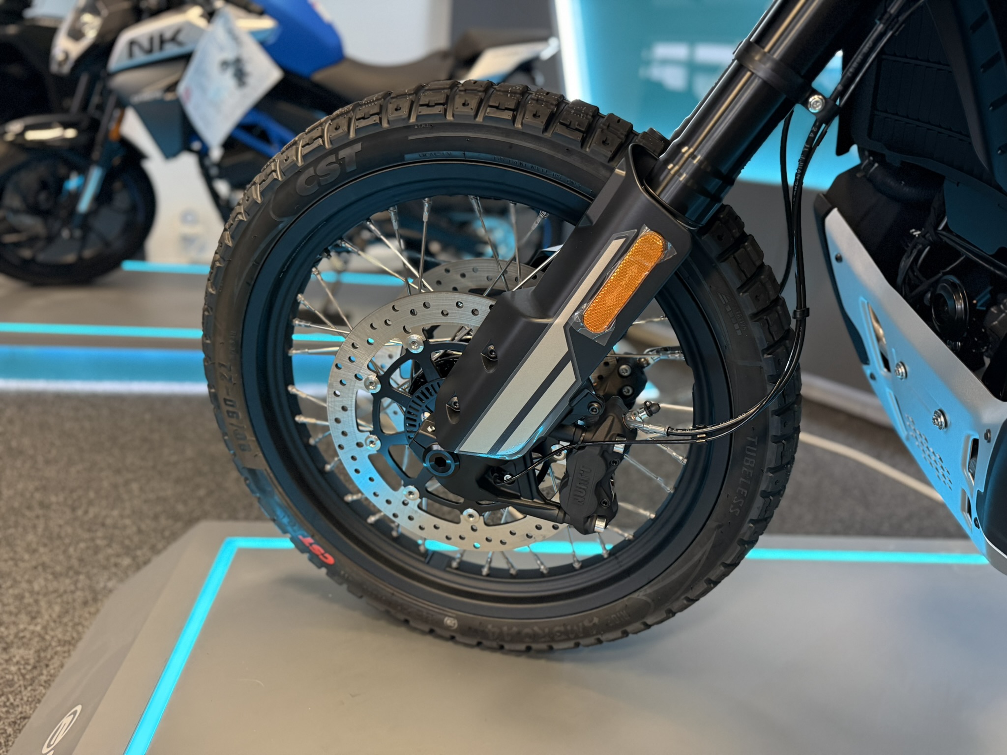Samozřejmostí musí být bezdušová vyplétaná kola 21″ vpředu a 18″ vzadu.