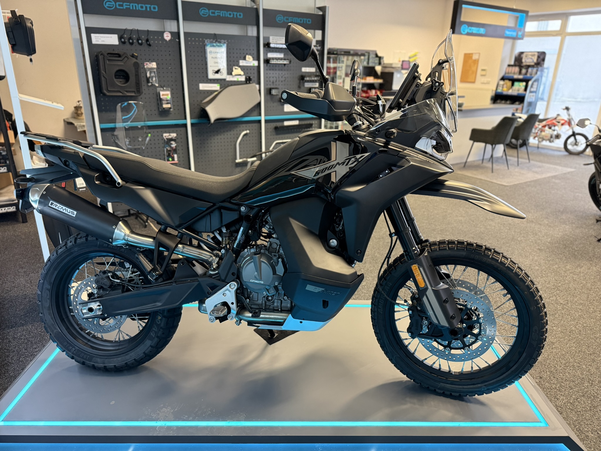 Aktuálně máme skladem CFMOTO 800 MT-X v barvě Nebula Black, navíc s nainstalovaným homologovaným výfukem REMUS. Cena skladového motocyklu včetně výfuku REMUS 239.990,- Kč (původní cena výfuku 14.000,- Kč vč.DPH)